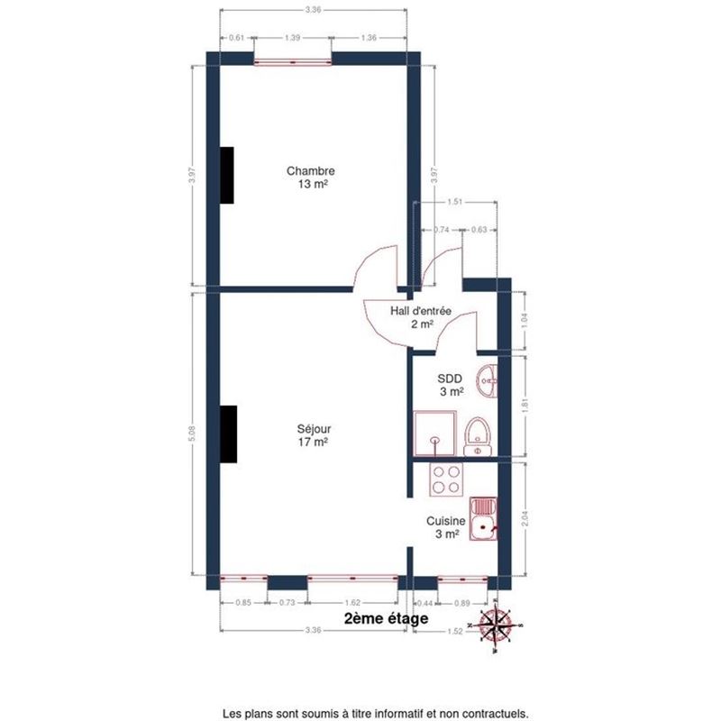 Surface de la salle de séjour 17 m² Cuisine Non Type de cuisine Non communiqué Double vitrage Non Type d'énergie du chauffage Non communiqué