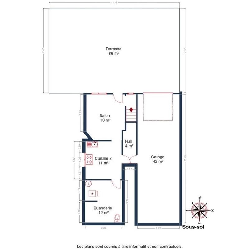 Au sous-sol : une buanderie avec espace chaufferie, une seconde cuisine, un garage, une pièce polyvalente actuellement aménagée en second salon, pouvant être utilisée comme bureau, salle de jeux, espace hobby, etc.