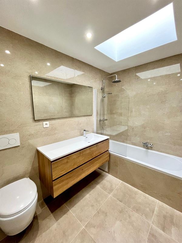 Le bien dispose également d'un garage et d'une cave. PEB C, châssis double vitrage PVC, installation électrique conforme, chauffage via pompe à chaleur (chaud/froid). Loyer 930€/mois hors charges individuelles.