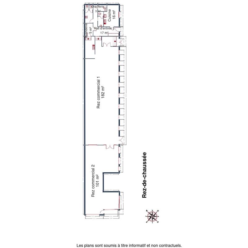 Il se compose à l'avant d'un showroom de 101 m² et à l'arrière d'une salle de 182 m² avec cuisine, WC séparé et local technique.