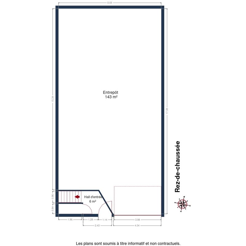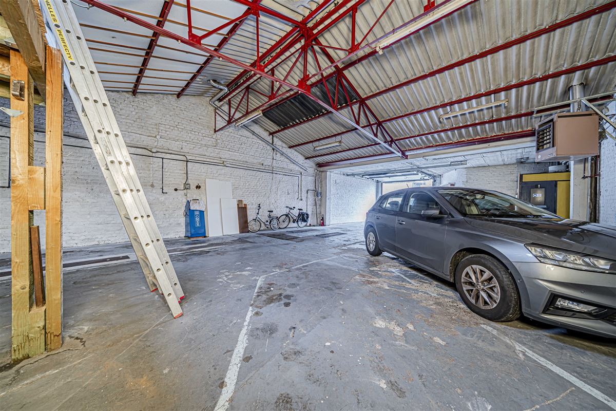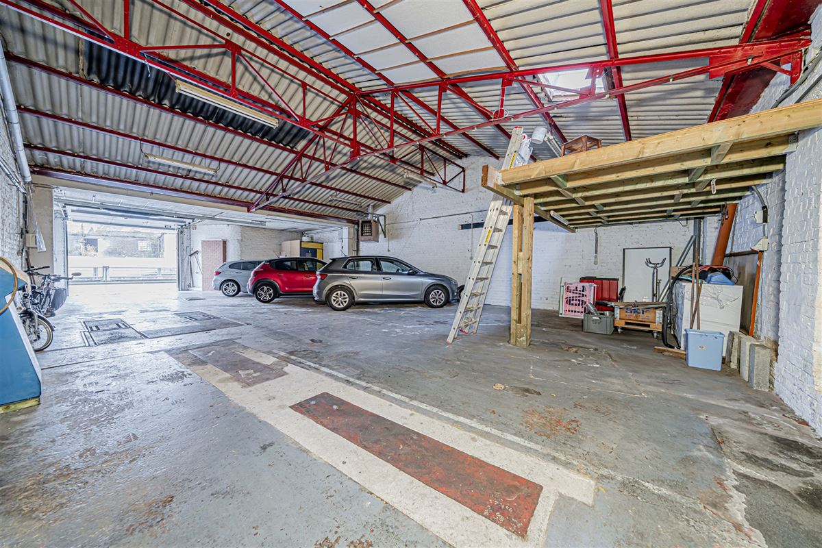 Un entrepôt d’une superficie de 142,50 m², disposant d’un pont élévateur, d’une porte sectionnelle, de sa propre installation électrique (à revoir partiellement) et d’un chauffage au gaz.