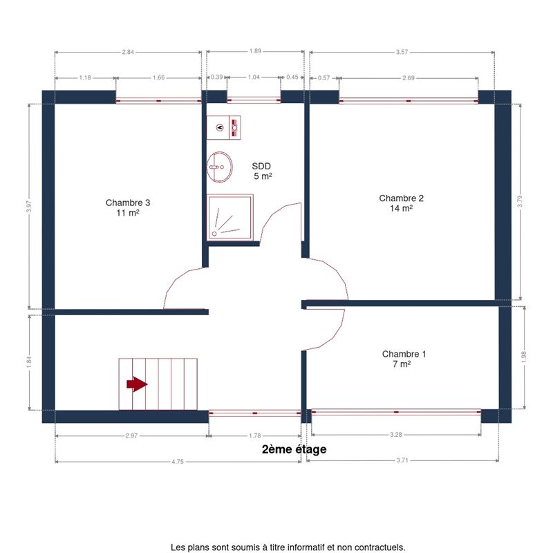 Au 2e étage : deux belles chambres, un bureau et une salle de douche.