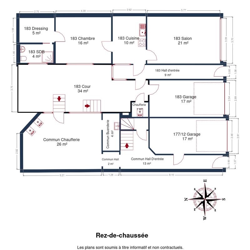 Le bien dispose également d’une chaufferie commune pour les appartements du 1er étage ainsi que de caves communes aux trois unités.