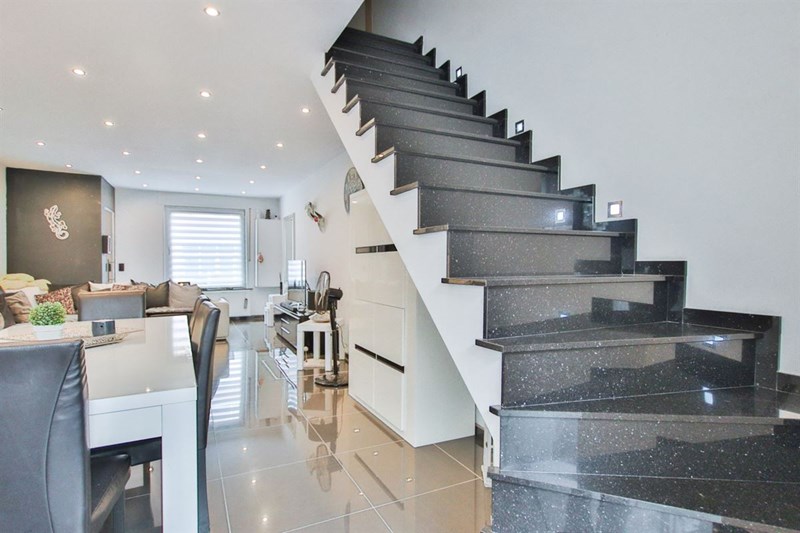 AU RDC: Un hall d'entrée, un magnifique séjour ouvert sur la cuisine équipée, une salle de bain et un espace buanderie.