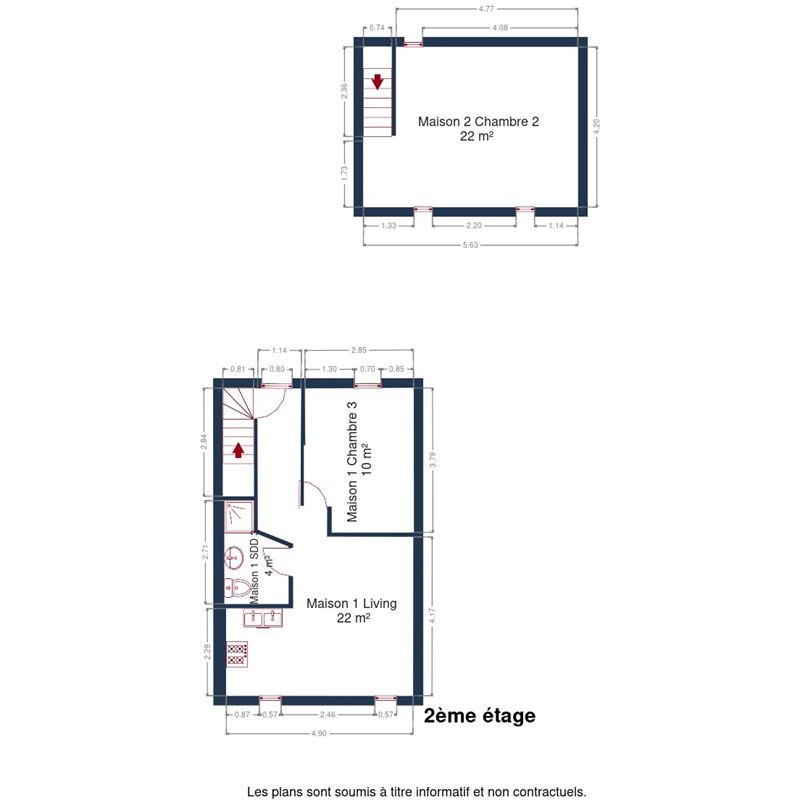 ·2e étage : hall de nuit, séjour, cuisine, chambre et salle de douche,