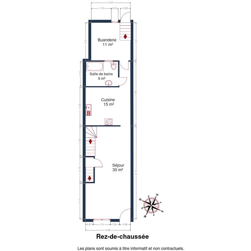 Elle se compose au rez-de-chaussée d’un beau séjour lumineux, d’une cuisine équipée récemment installée, d’une salle de bain ainsi que d’une buanderie donnant accès à un grand jardin.