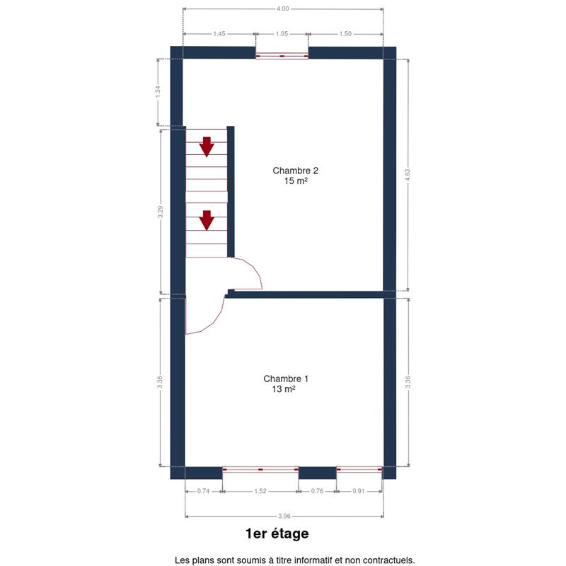 À l’étage, vous trouverez une première chambre de 13 m² et une seconde de 15 m² avec accès à un grenier aménageable, idéal pour la création d’une salle de jeux ou d’une troisième chambre.