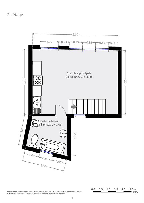 Au deuxième une spacieuse cuisine et une salle de bain.