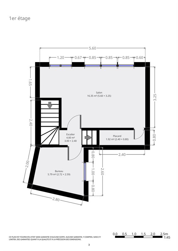 Au 1er une grande chambre et un bureau pouvant faire office de chambre d''enfant.