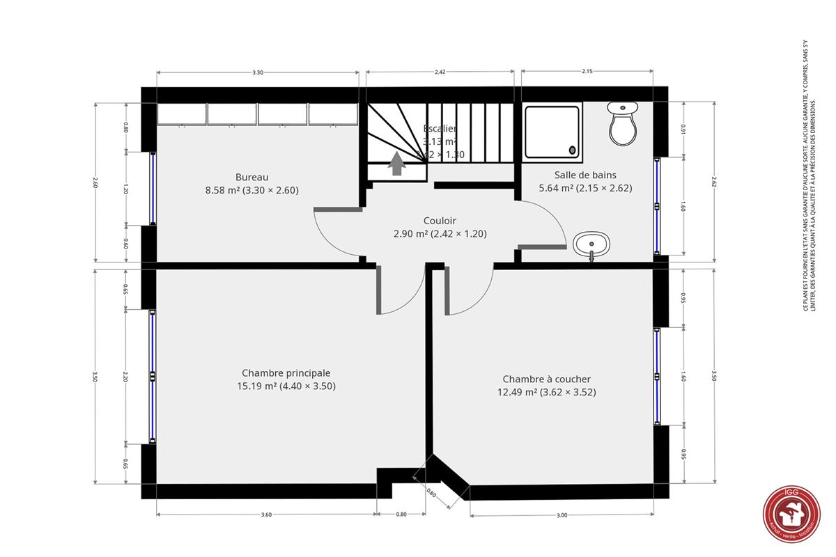 Au premier : trois chambres et une salle de bain.